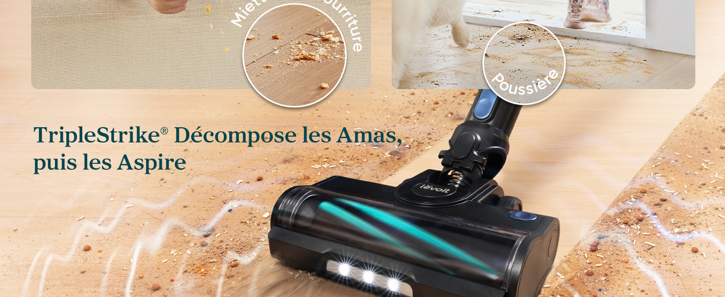 - Nettoyage sans Effort : Brosse Anti-enchevêtrement exclusive de Levoit élimine les poils sans avoir à les retirer à la main ni à obstruer les tubes d'aspiration, prolongeant ainsi la durée de vie de votre aspirateur sans fil