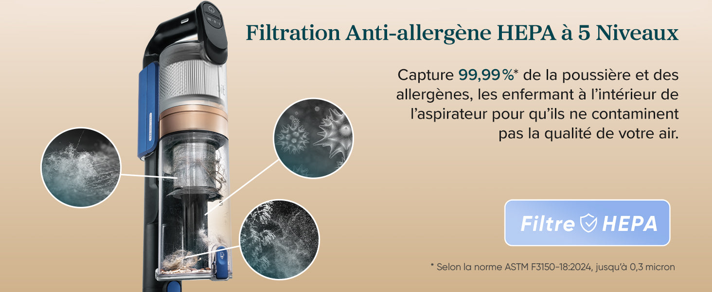 - Filtration HEPA à 99,99 % : capture 99,99 % des poils d'animaux, de la poussière, des squames et du pollen dans l'air évacué, offrant un nettoyage de niveau purifiant pour protéger la santé de votre famille